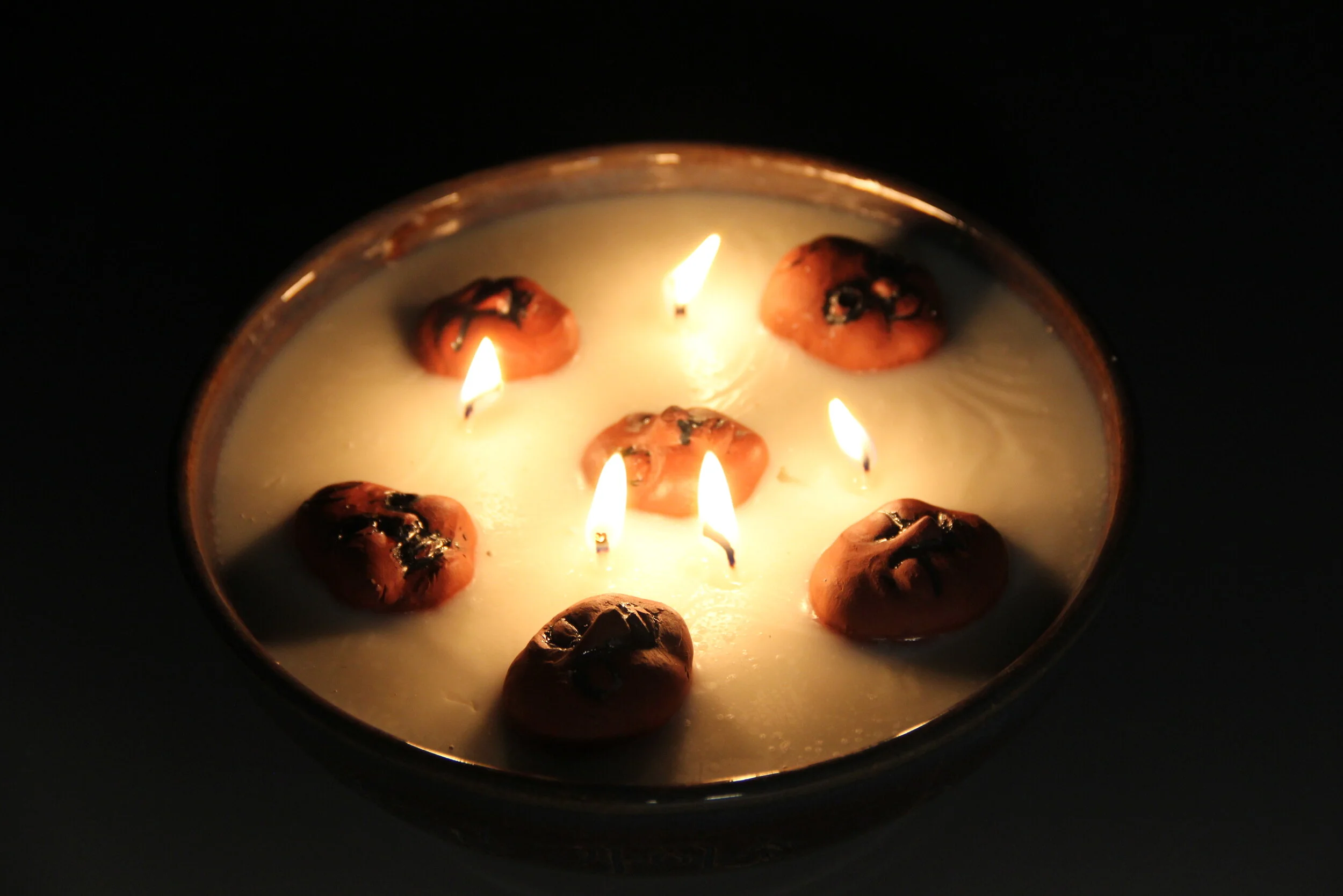 "祭祀 (Rites)" white and red clay, bisque to c04, carved and glazed to c5 and c05, respectively 8x8
